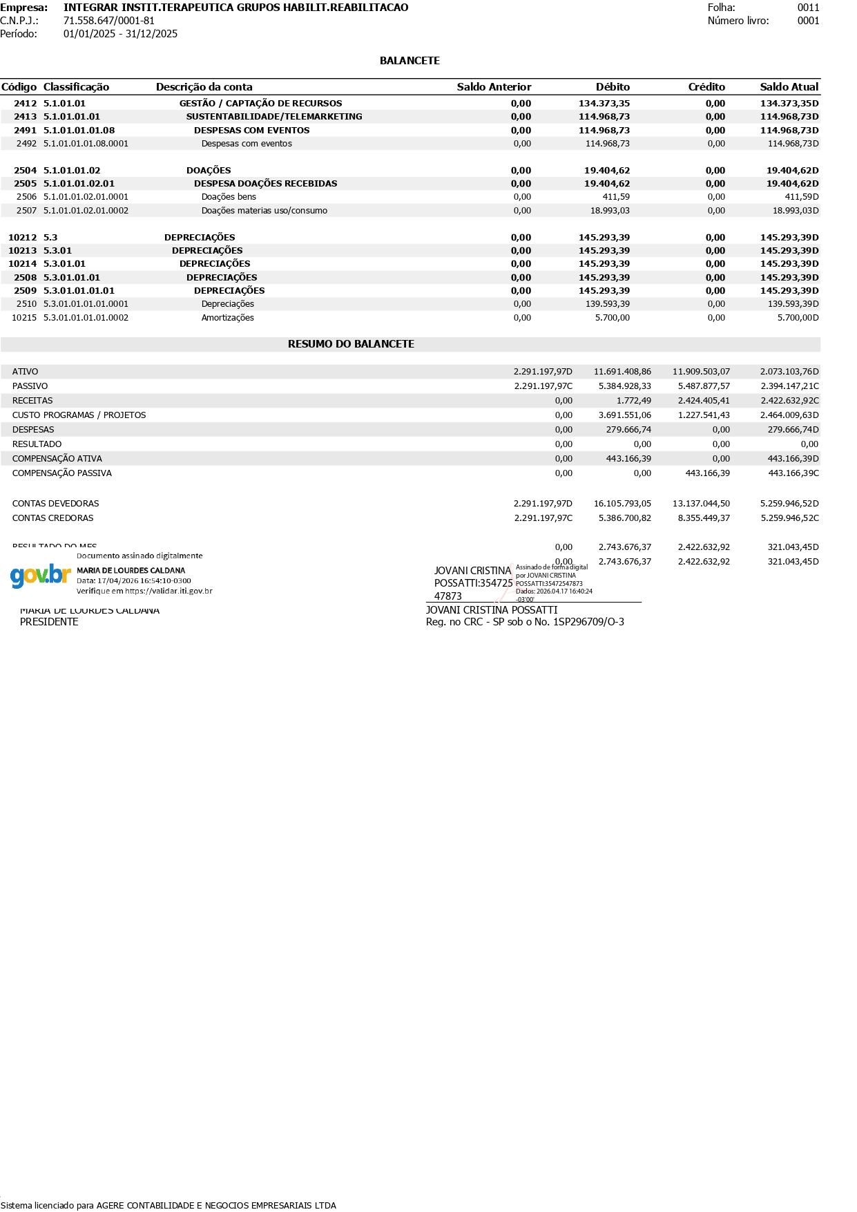 DIVULGAÇÃO DAS DEMONSTRAÇÕES CONTÁBEIS ANO 2025